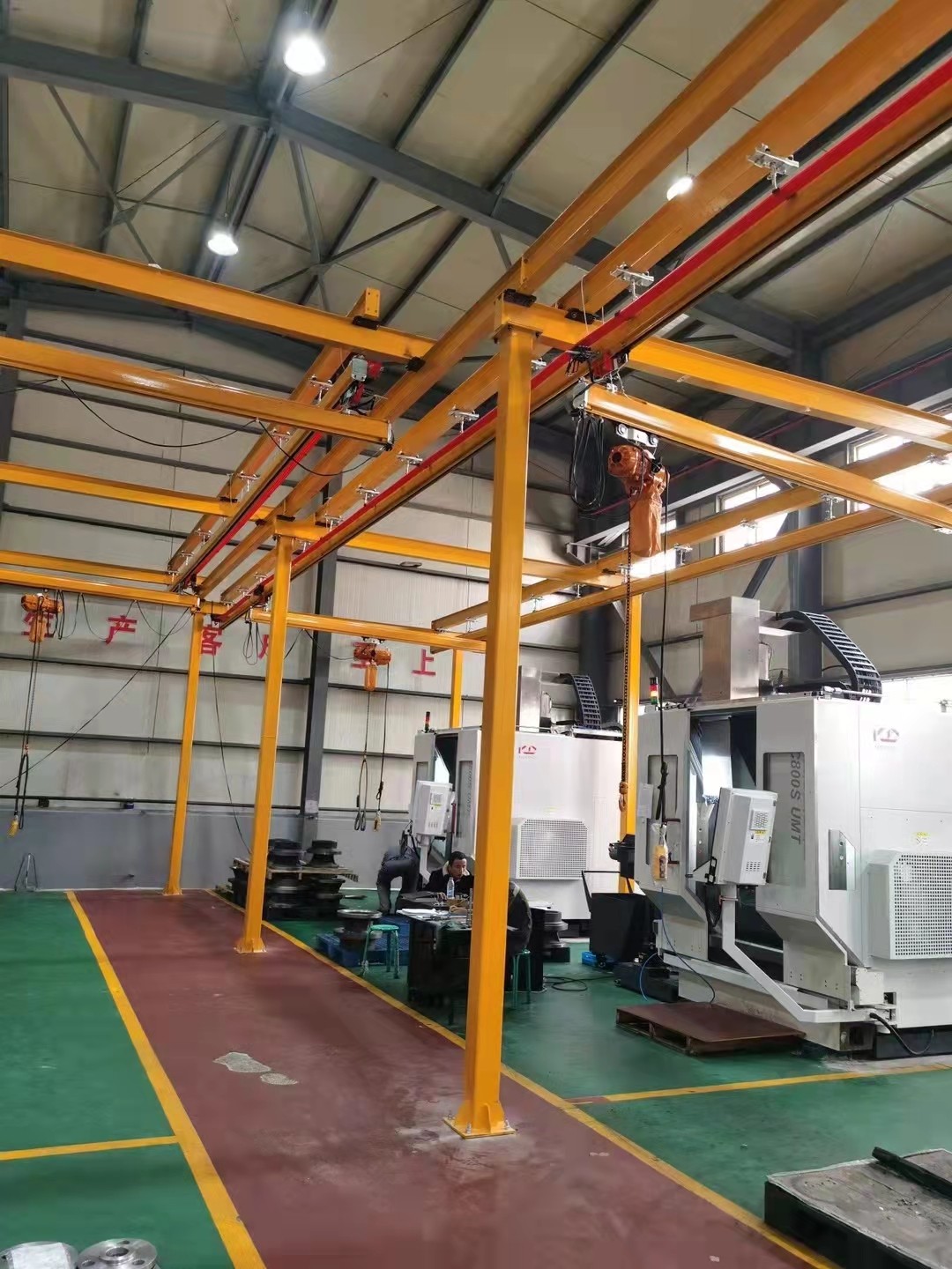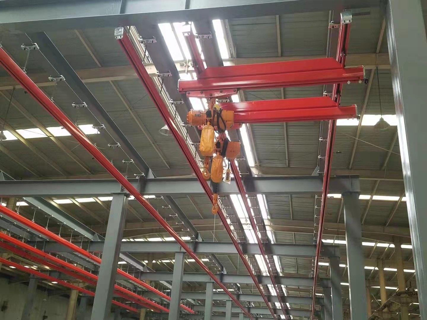 KBK起重機(jī)標(biāo)準(zhǔn)組件。由懸掛裝置、軌道、道岔、行走小車、電動(dòng)葫蘆、移動(dòng)供電裝置(滑線)以及控制裝置等組件組合而成,起升裝置主要采用環(huán)鏈電動(dòng)葫蘆,也可吊掛一些機(jī)械手或焊槍之類,作為工具滑軌使用,起重量一般不超2000kg。